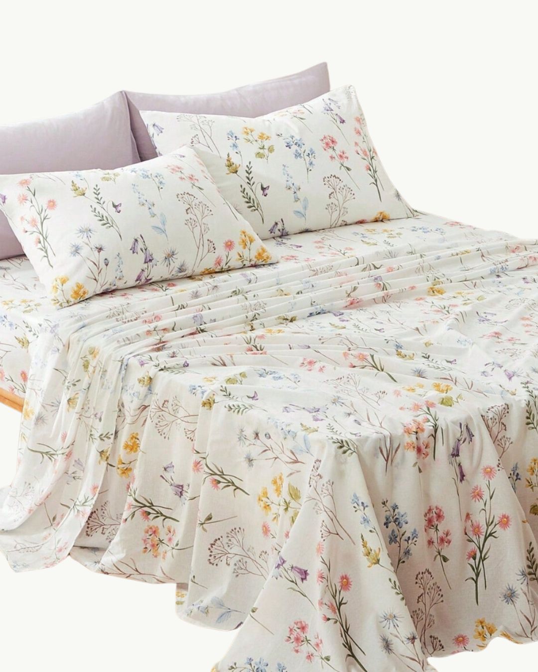 Color: Off-white with floral pattern.